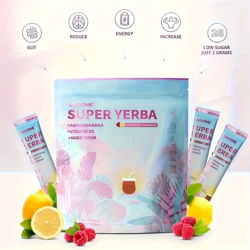 Super Yerba |RASPBERRY LEMONADE Flavor | Yerba Mate Instant Tea Powder | 30 Servings